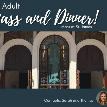 ATTENTION Young Adults! Sarah and Thomas are looking to connect Young Adults here at at St. James! Mark your calendar for our new monthly dinner after Mass. Next date: Sunday, November 23! Find out more about connecting with Young Adult. Sarah and Thomas can be reached at 20s30s@sandiegocac.org Here’s a picture from our October’s Sunday…