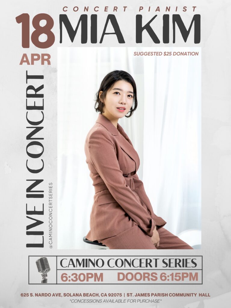 The Camino Concert Series is a donation based, family-friendly concert series in Solana Beach, located in North County San Diego. Experience the power of music with a captivating program that is paving the way to community through music. Hosted here at St. James in Solana Beach, our series features a diverse lineup of performances by talented musicians from around the country. Join us for an inspiring array of classical and contemporary music brought to you by soloists, ensembles and bands alike. Whether you’re seeking inspiration or simply a fun afternoon with family and friends, our concert series offers a welcoming space for all to enjoy!