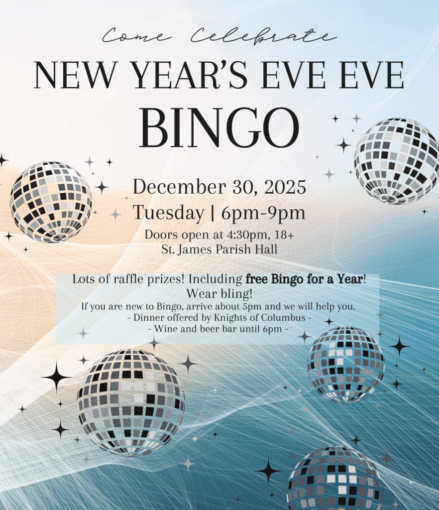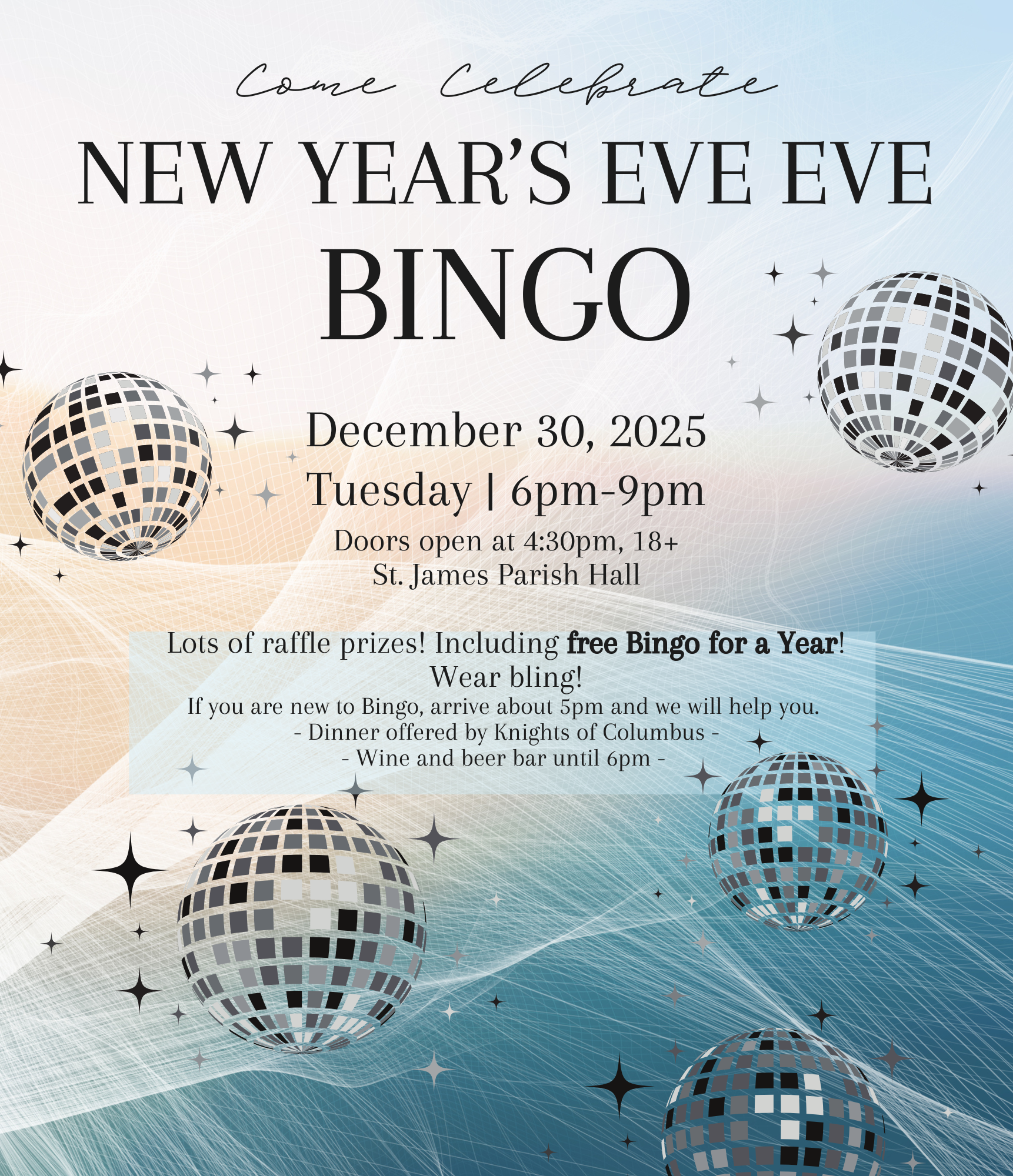 New Year’s Eve-Eve Bingo Fundraiser! Dec 30th Yesterday St. James and St. Leo Parish News, Bingo Updates