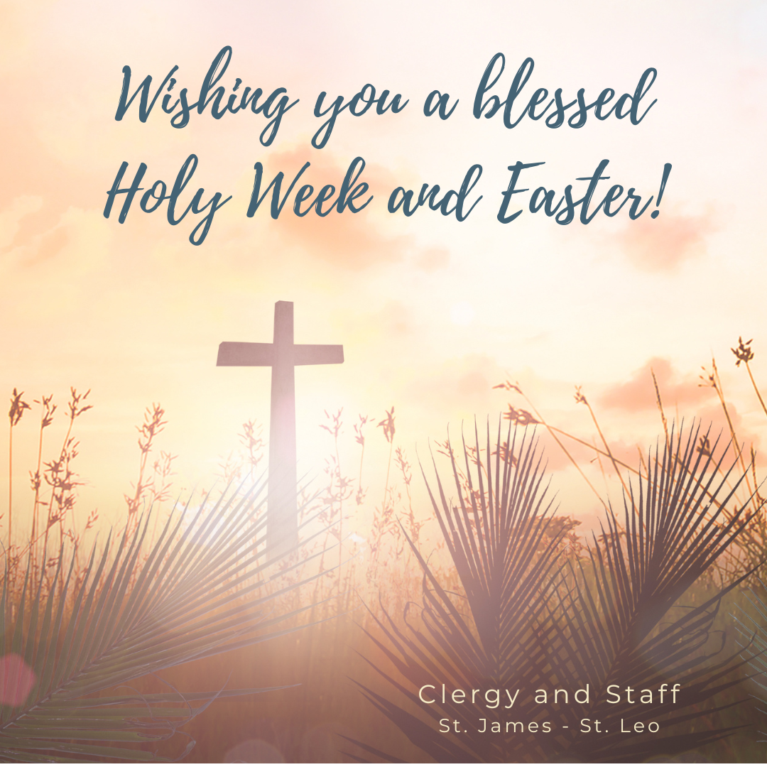 Parish Office closed – Easter April 17, 2025 St. James and St. Leo Parish News Wishing you a blessed Holy Week and Easter! The parish offices will be closed Thursday at noon (4/17), Good Friday (4/18), and Easter Monday (4/21).